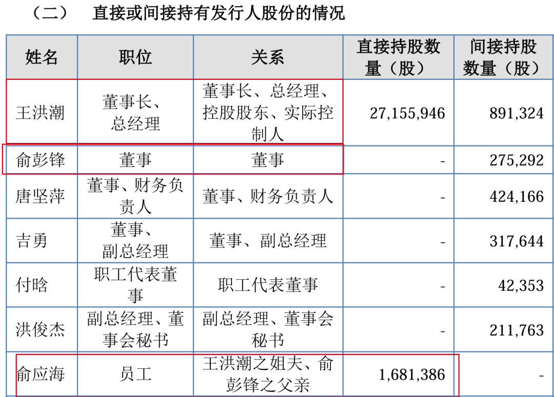 颇为奇怪的是,作为公司初创股东,王洪潮与俞应海的角色分化极为明显——王洪潮身兼董事长、总经理,牢牢掌控公司;俞应海则仅为员工,未出现在核心管理层。