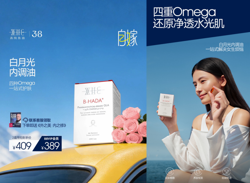 在关注女性精神表达的同时,WHC也始终关注女性真实而具体的身体状态。面对日常生活中皮肤状态的波动、快节奏带来的压力以及生理周期的不适,WHC白月光内调油提供了科学的解决方案。