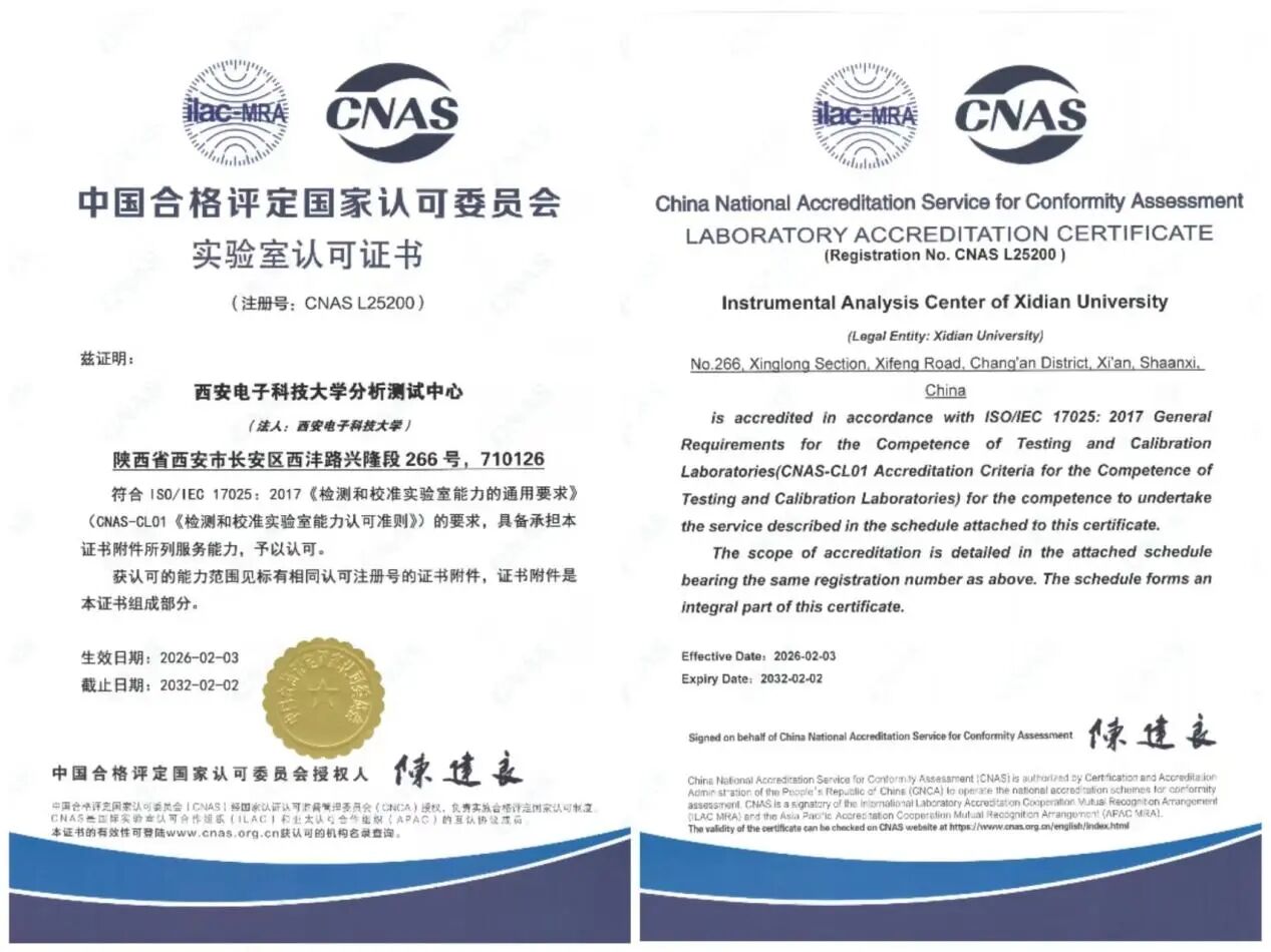 近日,西安电子科技大学分析测试中心正式获批中国合格评定国家认可委员会(英文缩写为CNAS)实验室认可证书。这标志着学校分析测试中心在质量管理、技术能力和检测水平等方面达到国际标准,所出具的有关检测报告在国际范围内具有权威性、互认性和公信力。