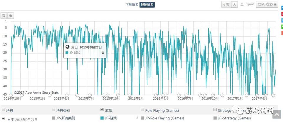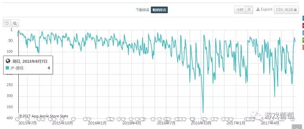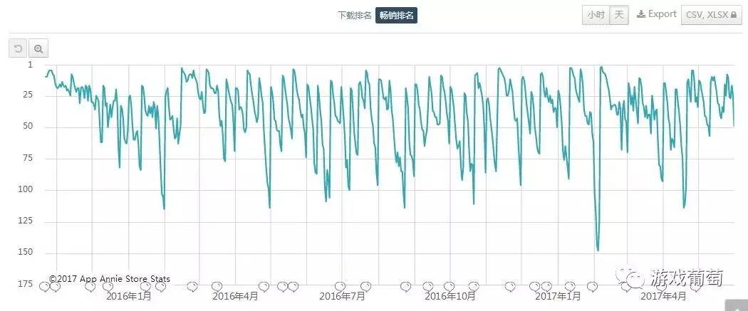 其次《最终幻想勇者EXVIUS》徘徊在1到100之间,波动较大。相比《最终幻想Record Keeper》世界观有所变化,在画面上做了一定提升,并加入了冒险模式和更为复杂的游戏系统(氪金点更多)。