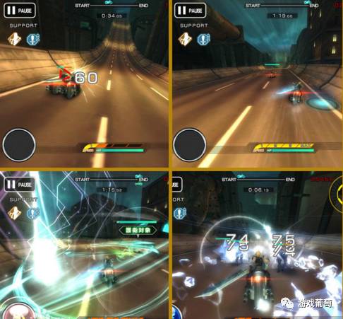 2014年11月的产品《最终幻想7 G-BIKE》,把经典主人公克劳德在故事中的公路摩托战场景,做成了一款手机跑酷游戏。游戏中玩家除了竞速,还需要升级人物装备和魔法,不同摩托的配件升级需要刷关收集材料,唯一的氪金点是体力值的购买。游戏虽画面优秀但内容单一,风格过于机械硬派也不能满足女性玩家需求,最终无奈下架。