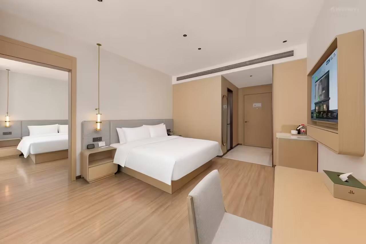 酒店拥有现代智能设施,大厅配备自助入住机及送物机器人,客房内全智能客控系统、独立专线无线网络及冰箱等家电,满足商务办公与休闲需求。此外,酒店还提供多种房型选择(如影音房等),配合健身房、会议室、早餐厅等公共空间,全面提升入住体验。