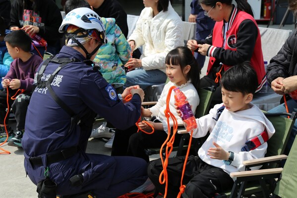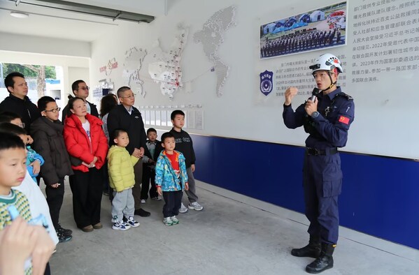 救援组长郑成炜,他身姿干练挺拔,带领大家参观队部,他不煽情,不渲染,为大家平静地讲述墙上每一张照片、每一段文字背后的故事:洪水、地震、山地、海上——那些被制服掩藏的汗水、泪水,以及无数次与危险擦肩而过的瞬间。这些残酷却真实的案例让在场的大人、孩子发出感叹,眼眶悄悄泛红。那一刻,大家更加明白:所谓英雄,不过是一群普通人,在危急时刻选择了逆流而上,而这份选择的背后,是日复一日的坚守——坚守需要被看见,也需要被支持。