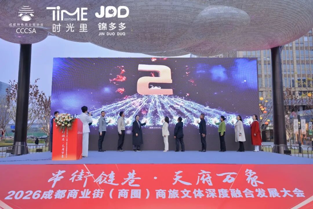 三月蓉城,春意盎然,街巷处处涌动着蓬勃的消费活力。3月5日下午,由成都市商务局、中国步行商业街工作委员会、中国商旅文产业发展工作委员会指导,成都特色商业街协会主办的“串街链巷·天府万象” —— 2026成都商业街(商圈)商旅文体深度融合发展大会在成都保利时光里特色商业街区隆重召开。本次大会聚焦新业态、新场景、新模式“三新”建设,着力推动示范步行商业街(商圈)、特色商业街区、便民生活圈“三圈”融合,汇聚政企学研多方力量,共绘成都特色商业街区(商圈)高质量发展新蓝图,为2026年全省商业街发展开篇布局,助力公园城市与国际消费中心城市建设取得新突破。