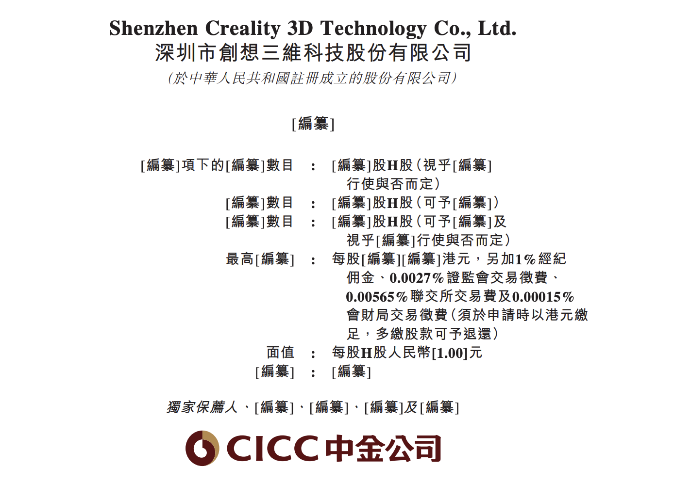 3月9日,据港交所文件,深圳市创想三维科技股份有限公司向港交所提交上市申请书,独家保荐人为中金公司。