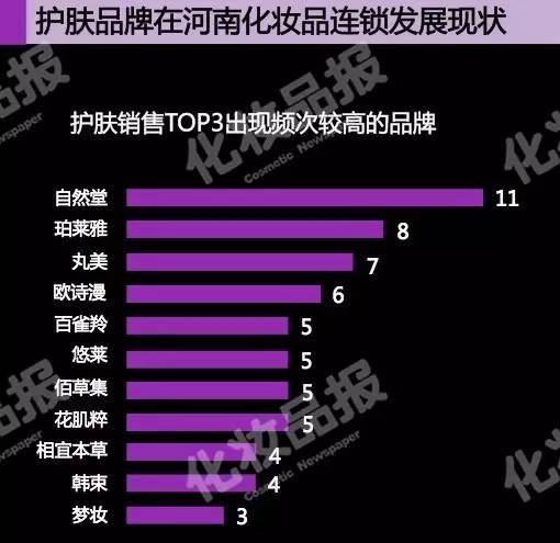 9河南连锁店护肤/彩妆/洗护/面膜冠军品牌是?
