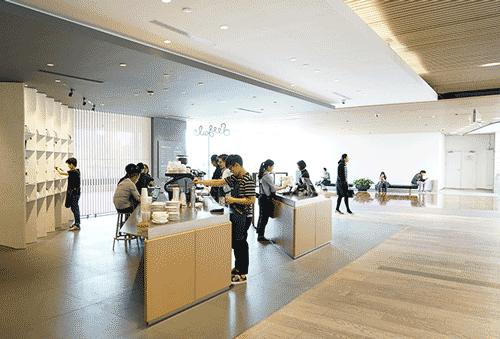 在选址上,Seesaw是最早打破精品咖啡馆选址惯例的。它没有选择街边,而是把精品咖啡开在人流量大的商场里。同时,它打破了精品咖啡开小店的惯例,它很多店开到200㎡,并在空间设计上做发挥,开放互动的空间。