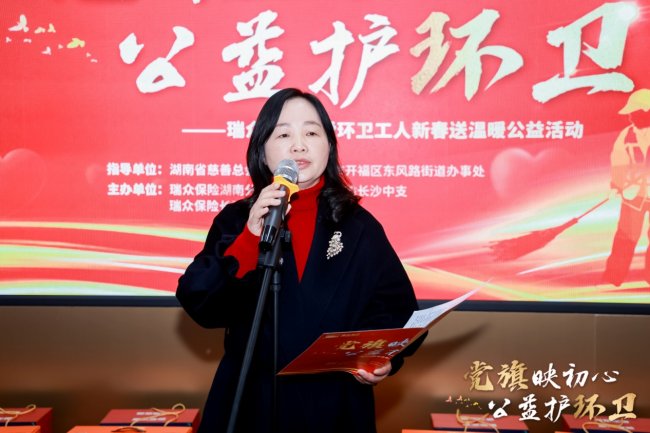 2月9日上午,由湖南省慈善总会及相关政府部门联合主办,瑞众保险承办的“党旗映初心 公益护环卫”关爱环卫工人新春活动温情启幕,活动现场为50名辛勤工作在一线的困境环卫工人送上了三万元的新春慰问金与价值两万元的暖心物资,并揭牌成立了面向环卫工人的“爱心驿站”,以实实在在的行动传递社会关爱,践行金融企业的温度与担当。