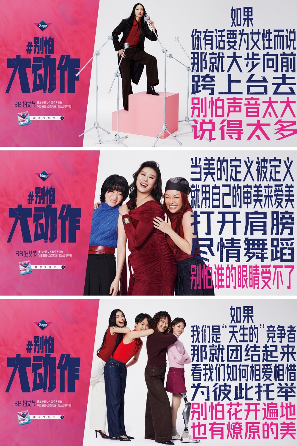本次#别怕大动作 主题活动,薇尔从勇敢发声、抵抗不公、审美自由、机会平等、女性互助等多个维度,支持女性为自身及群体勇敢发声,不必顾虑“声音太大、说得太多”;支持女性直面不公,扔掉标签,打破偏见,让女性力量汇聚成炬。
