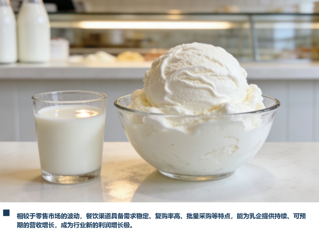 相较于零售市场的波动,餐饮渠道具备需求稳定、复购率高、批量采购等特点,能为乳企提供持续、可预期的营收增长,成为行业新的利润增长极。