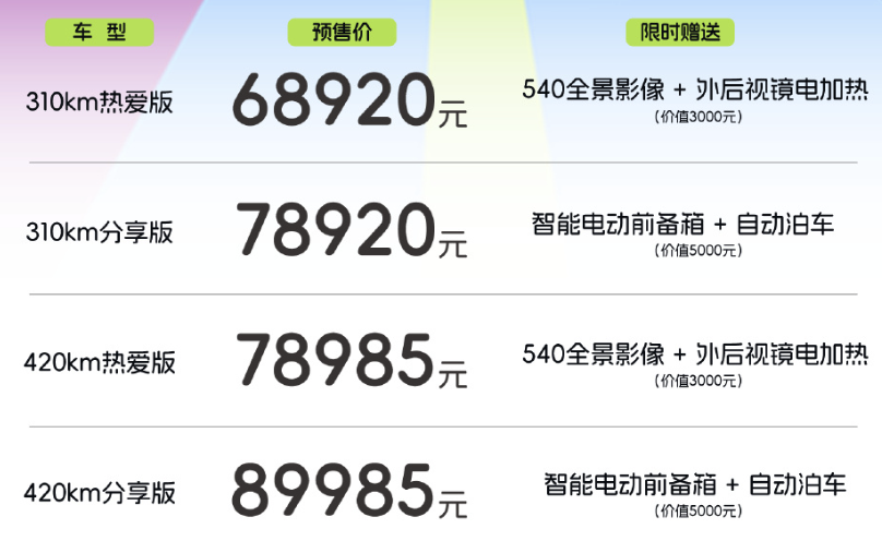 3月10日,奇瑞汽车宣布新款QQ3正式预售,共提供四款版型,预售价68920元起。