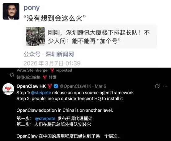 在深圳腾讯大厦楼下,近千名开发者排起长龙,只为安装一个名为OpenClaw的AI工具。