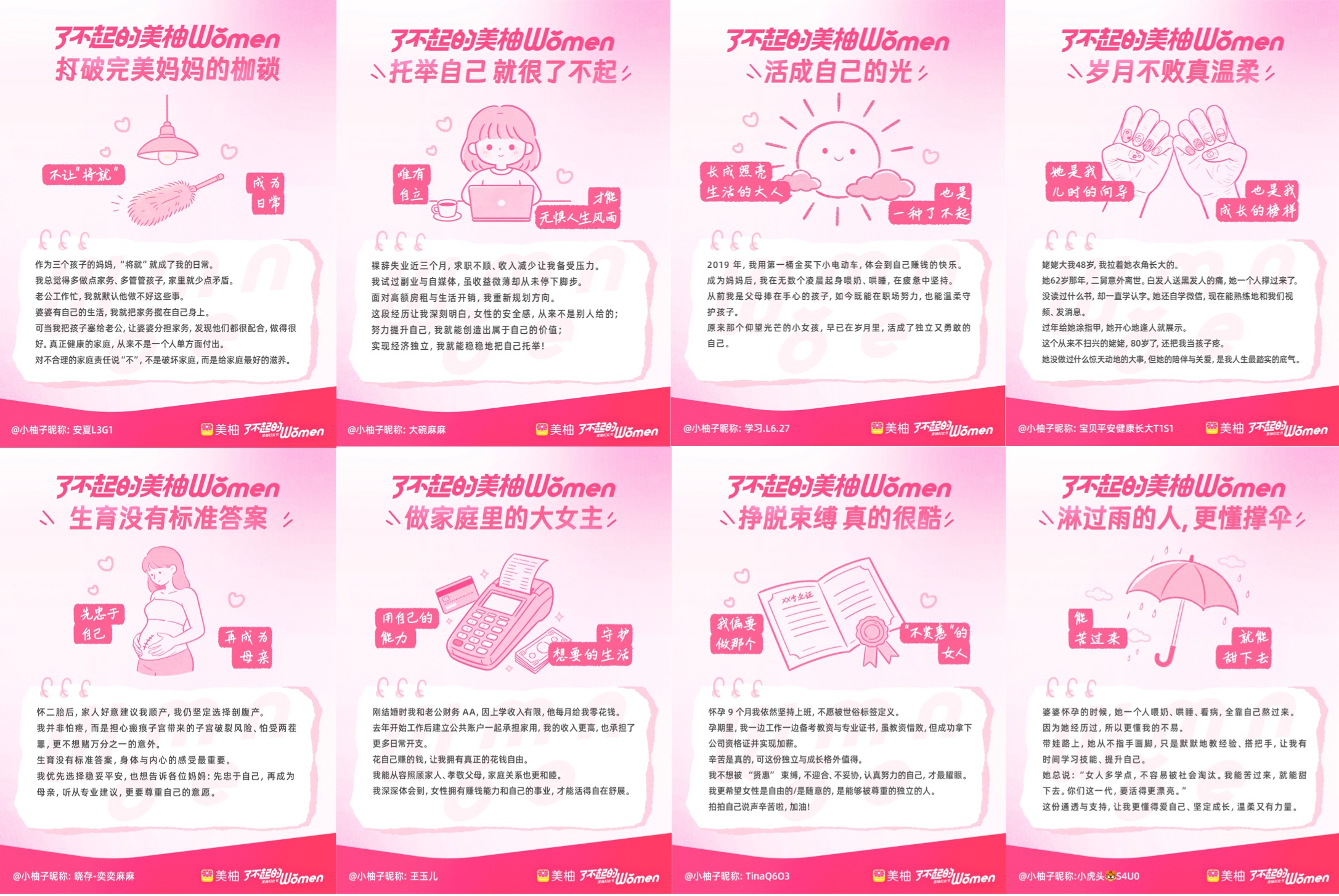 在美柚社区,由她来写「Herstory」,我们看见她平衡职场和家庭、她处理矛盾和情绪、她完成工作和家务、她照顾孩子和自我……真实而具体的故事,最终汇聚成一份 《了不起的美柚女性故事图鉴》。