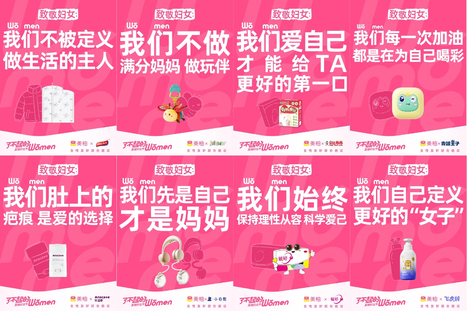 从2025年的“祝福”到2026年的“致敬”,美柚联合超过38家女性友好品牌,在线上社媒平台集体表达对女性的致敬和支持,每一张海报,都是一份对女性闪光日常的温暖回应。这些声音交织成一连串“女性友好品牌”传达声量,让节日的讨论不止于女性群体,更流向更广阔的世界。