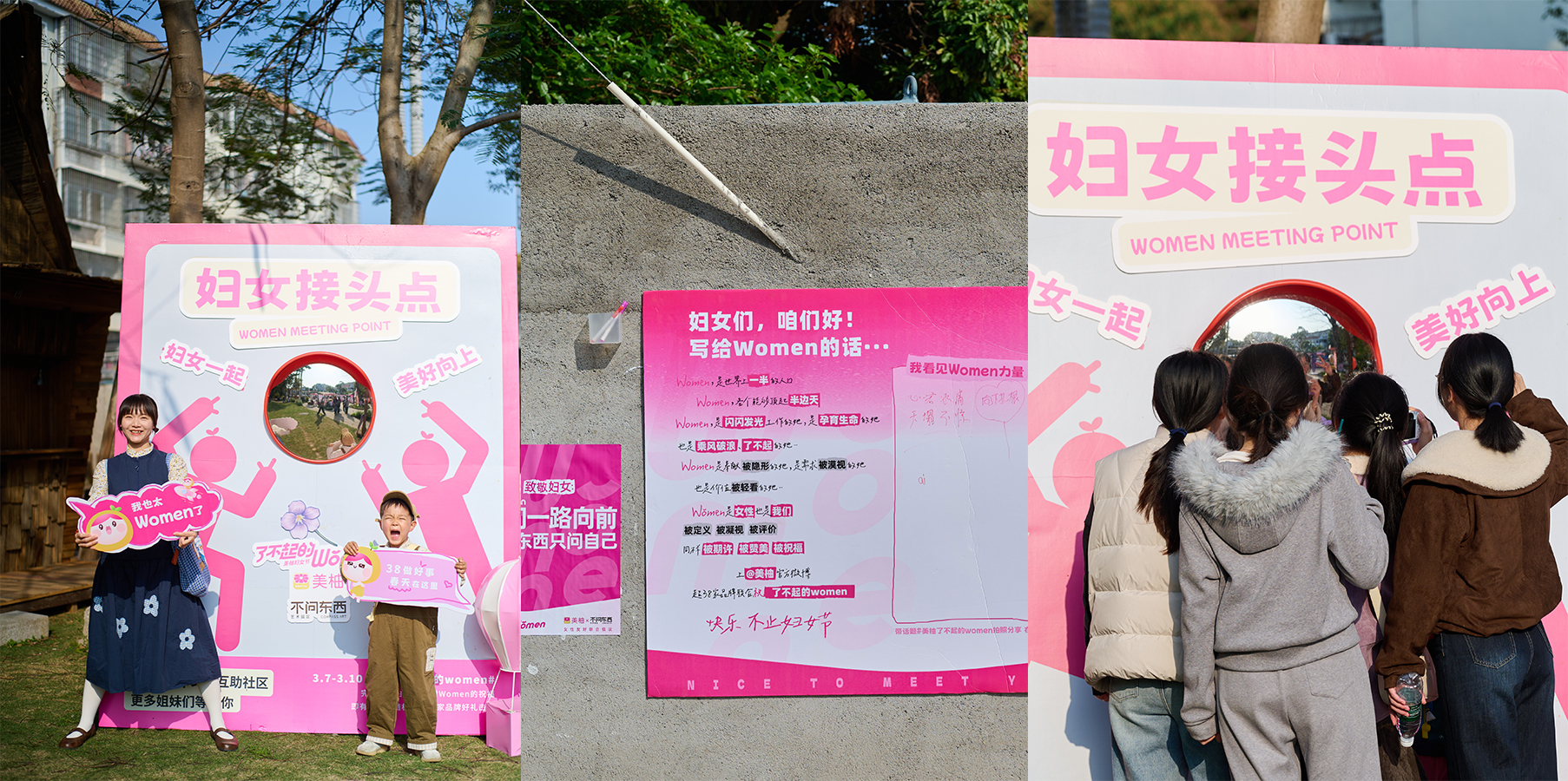 互动打卡,Women本就是风景。路过的女性停下脚步,她们书写“Women”的肯定,也留下对“Women”的祝福,打卡妇女接头点, 「了不起」此刻正在发生……