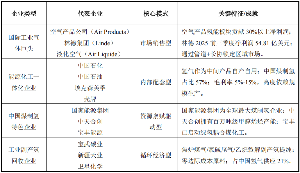 该模式以空气产品公司(Air Products)、林德集团(Linde)、液化空气(Air Liquide)等全球工业气体巨头为代表,将氢气作为商品对外销售,通过“生产+储运+销售”的全链条服务获取利润。其商业逻辑在于依托大型制氢装置(通常布局在天然气资源富集区或工业客户集聚地),通过管道、长管拖车或液氢槽车向周边炼厂、化工厂、电子厂等分散客户供应氢气,形成区域性气体供应网络。盈利来源包括管道供气的长期照付不议合同、液体氢气的批量销售以及瓶装氢气的零售溢价。林德集团2025年前三季度净利润达54.81亿美元,灰氢及相关储运业务是核心盈利支撑。