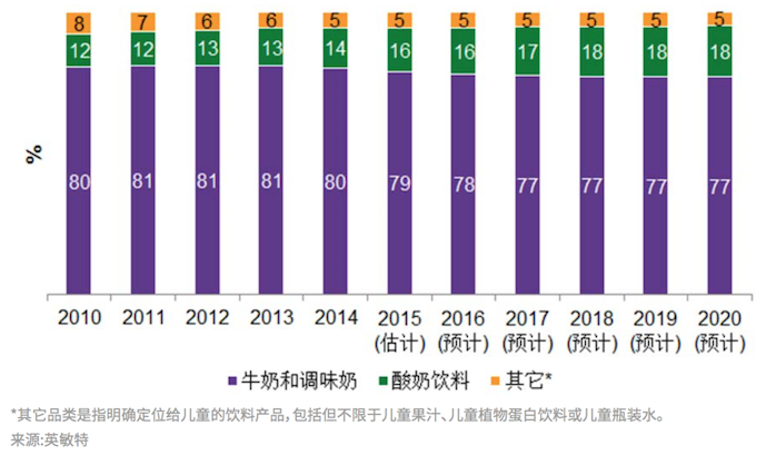 市场研究公司Mintel给出的预测数据是,2020年儿童饮料销售额将达到660.43 亿元人民币,而2015-2020年间的年均复合增长率将达7.5%。