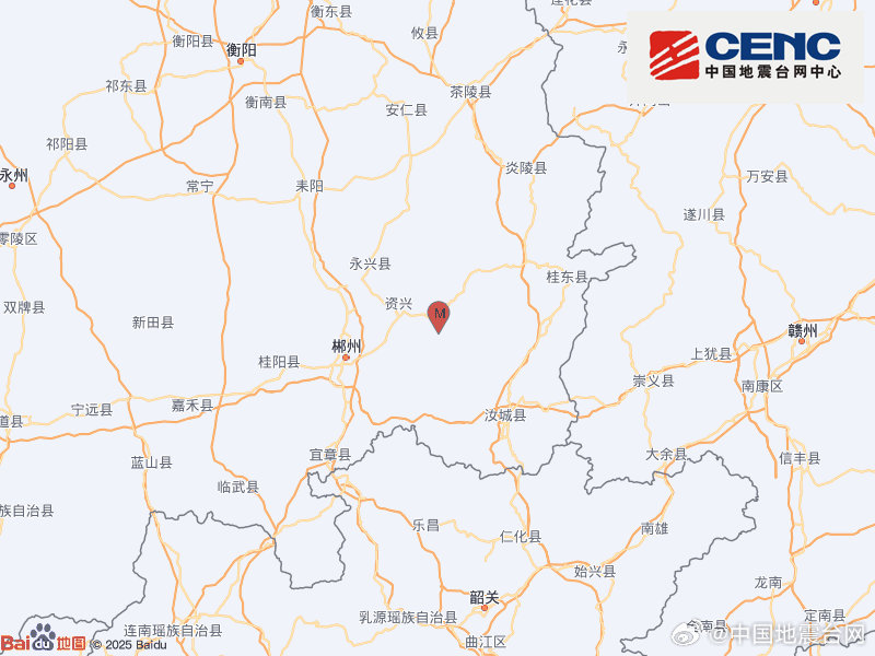 湖南郴州市资兴市发生2.9级地震,震源深度6千米