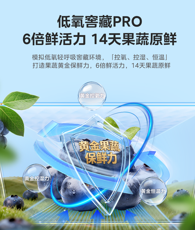 针对旺盛的果蔬存储需求,低氧窖藏PRO以原创设计构建行业领先的果蔬保鲜体系。该技术突破传统保鲜思路,模拟传统窖藏的天然优势,通过原创密封结构与控氧保湿膜的协同作用,打造低氧、恒湿、恒温的专属储存空间,精准延缓食材氧化进程。经实践验证,该技术可实现果蔬6倍鲜活力留存、14天长效保鲜,远超行业常规果蔬保鲜周期,适配各类应季果蔬与特色珍品,让消费者全年都能享用新鲜果蔬,为果蔬保鲜技术创新提供了全新路径。