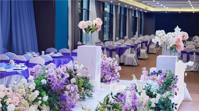 场地空间的利用极具灵活性,可精准适配不同需求:10人的商务小宴,选个靠窗的半私密卡座,氛围私密且高效;20人的家庭寿宴,全日餐厅的长桌配上温馨寿桃装饰,营造出其乐融融的亲情味;50人的企业年会或小型婚宴,会议室瞬间变身宴会厅,专业音响配合简约布置,气场全开。更有主题定制服务,无论是商务的高级感、家庭的喜庆风,还是聚会的轻松调,都能精准拿捏。