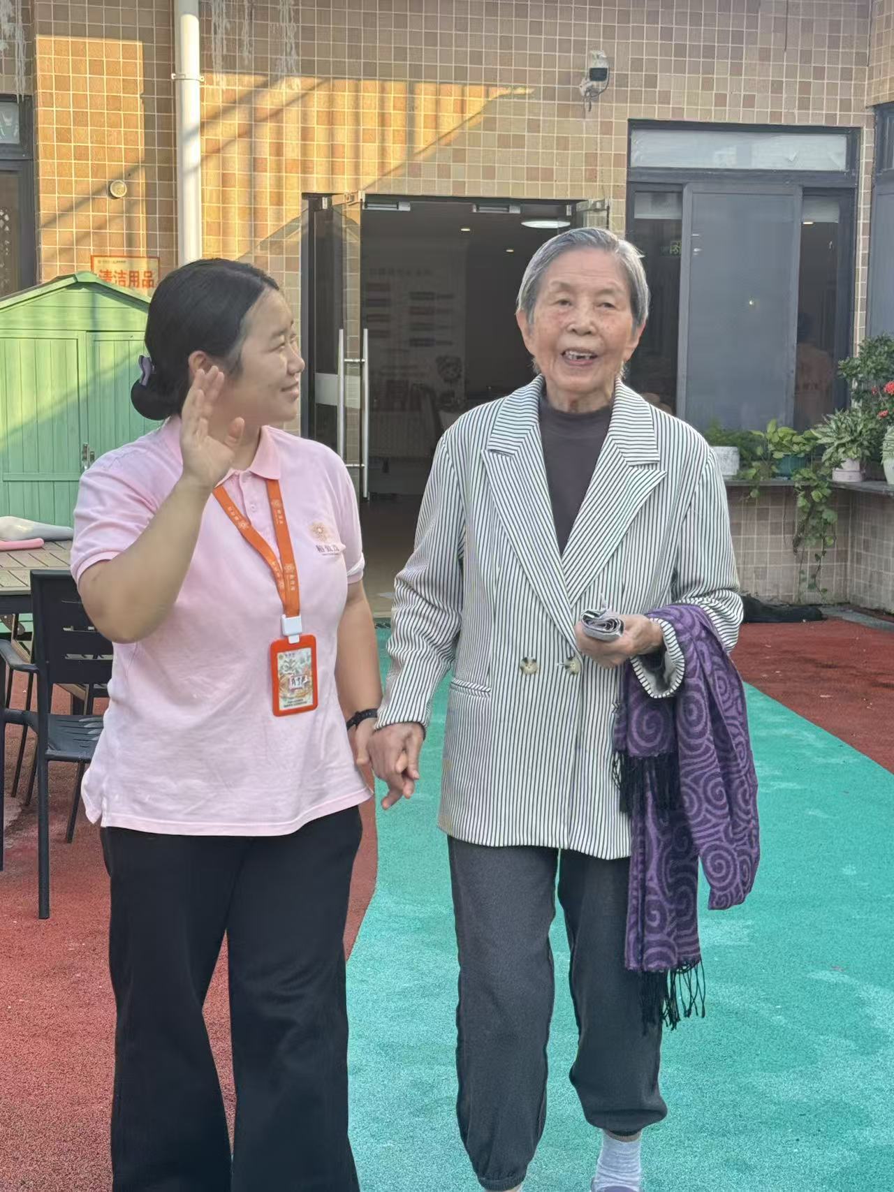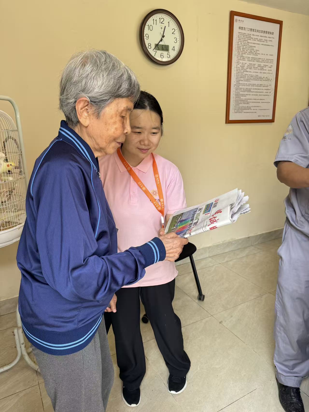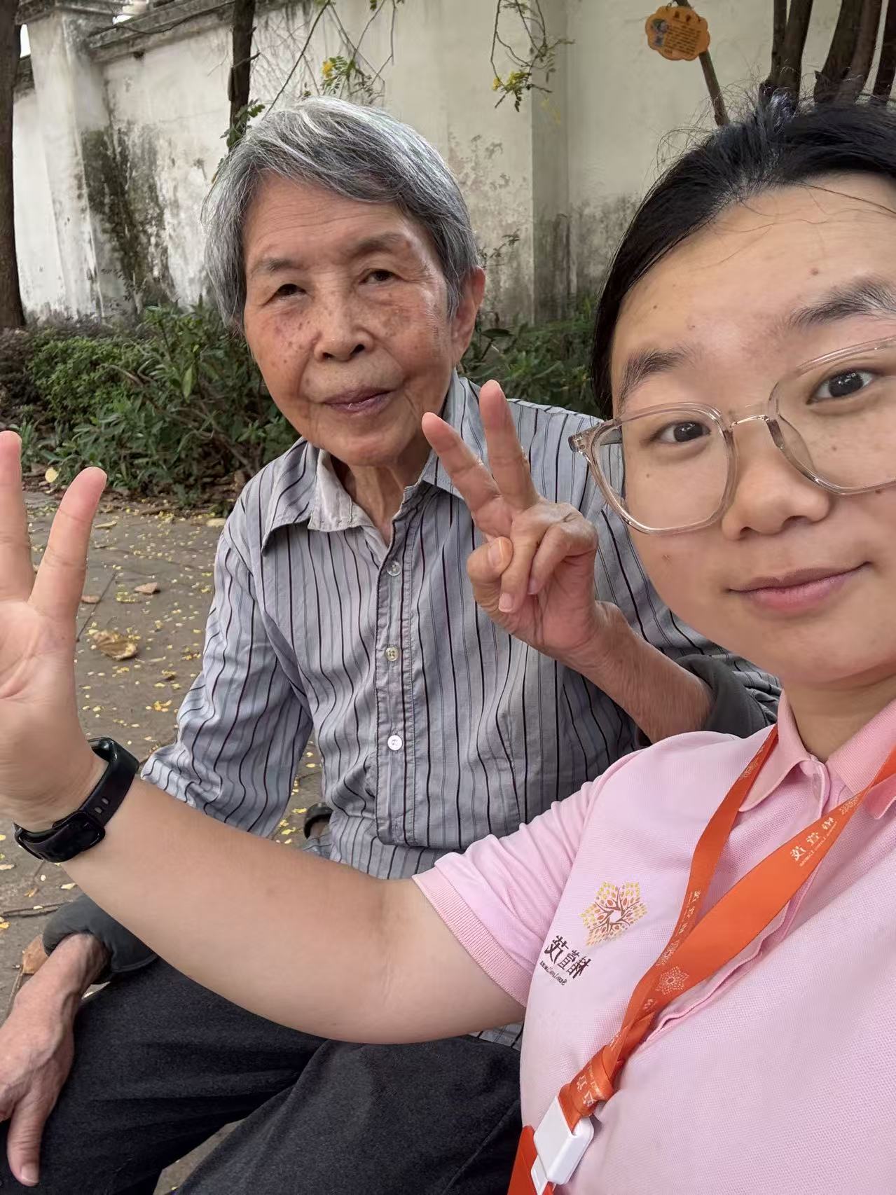 在椿萱茂(广州兴业)老年公寓,每天清晨都有一道独特的风景:91岁的刘婉玲老师在24岁生活助理肖宁君的陪伴下,缓步走向门卫室取报纸。刘老师双耳失聪,患有阿尔茨海默病,但在她心中,自己仍是那个需要外出采访、撰写新闻稿的《羊城晚报》资深记者。而她身旁那位00后的女孩小肖,是她最得力的“同事”。