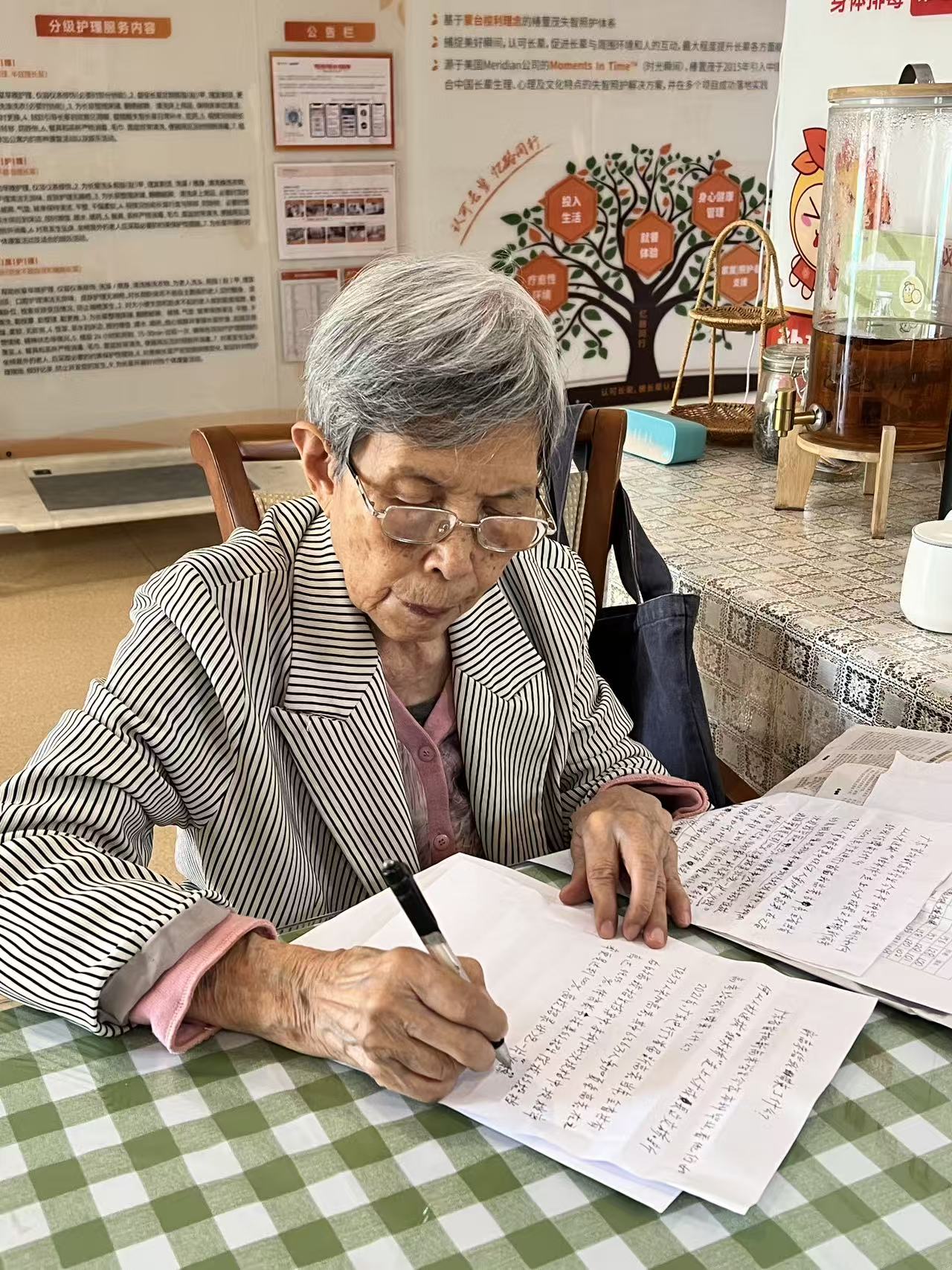 通过这份特殊的工作,刘老师的基本需求被充分满足:她依然是那个受人尊敬的前辈,依然是社会的一员,依然在为“读者”工作。在椿萱茂,她不只是被照护的对象,更是一个有职业、有同事、有稿要交的在职记者。