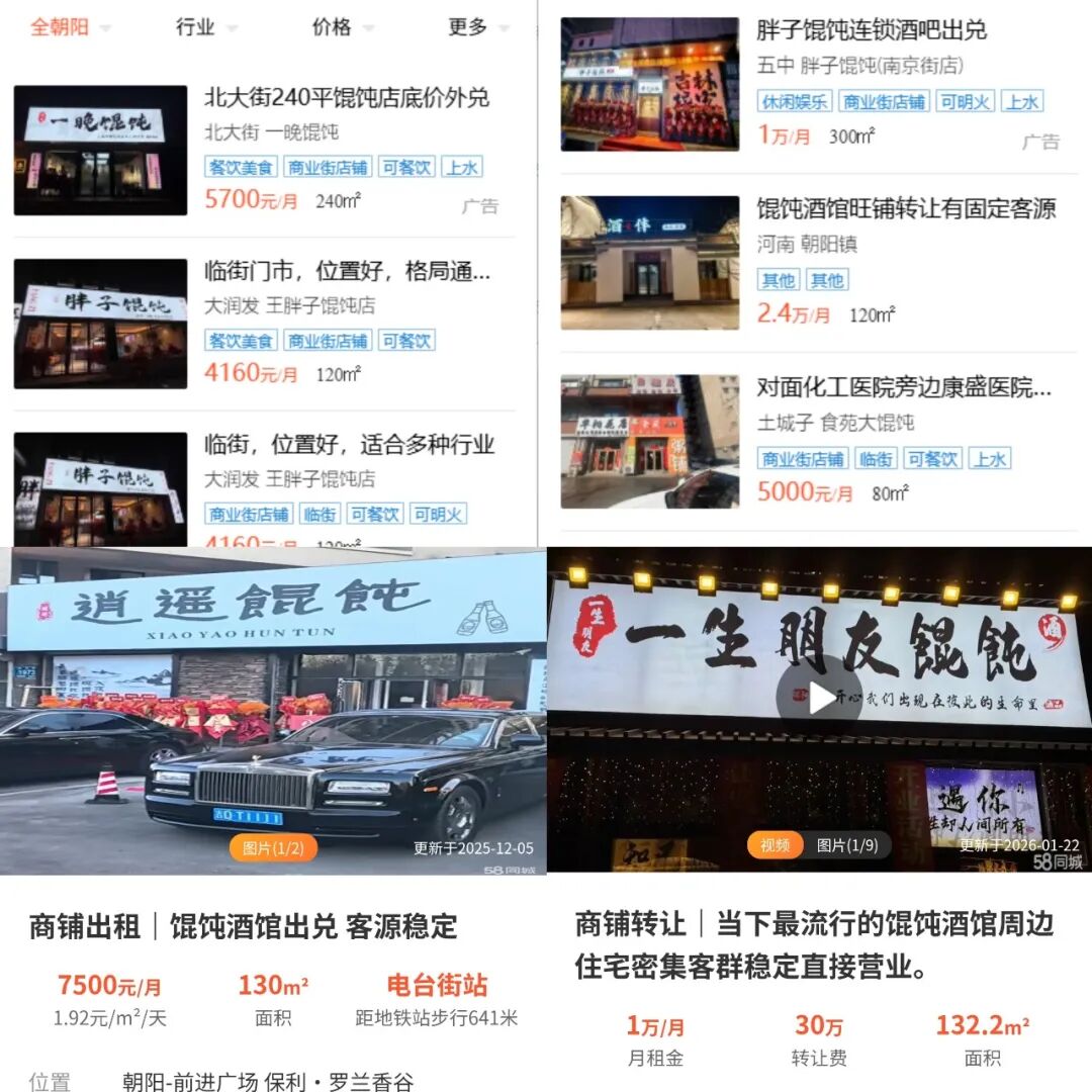 在长春专门做找店转店生意的“大牛哥”分享,今年以来,他已经接到了近10家馄饨酒馆的出兑咨询,这些门店大都只经营了1-3个月。