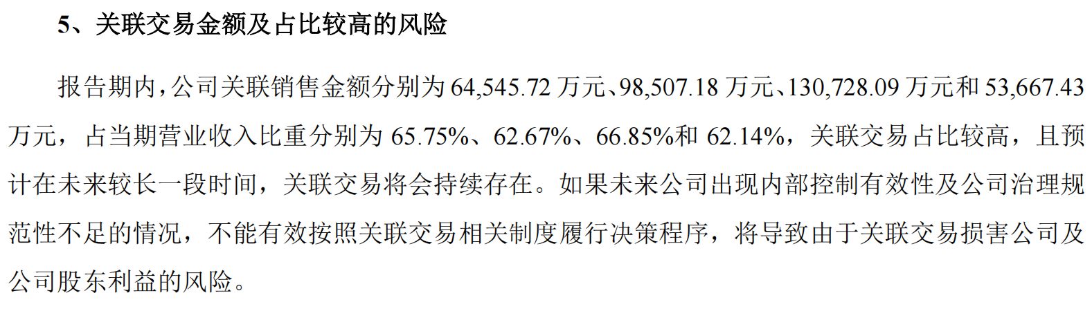 不过,莫森泰克招股书(申报稿)依然坦承两方面风险:一是单一客户依赖风险。若未来主要客户因自身经营变化或与公司合作关系发生重大不利变化,导致对公司产品的采购量大幅下降,将对公司经营业绩产生一定不利影响。二是关联交易占比过高风险。奇瑞作为公司关联方,若未来公司内控有效性及治理规范性不足,未能有效履行关联交易决策程序,可能导致关联交易损害公司及中小股东利益的风险。