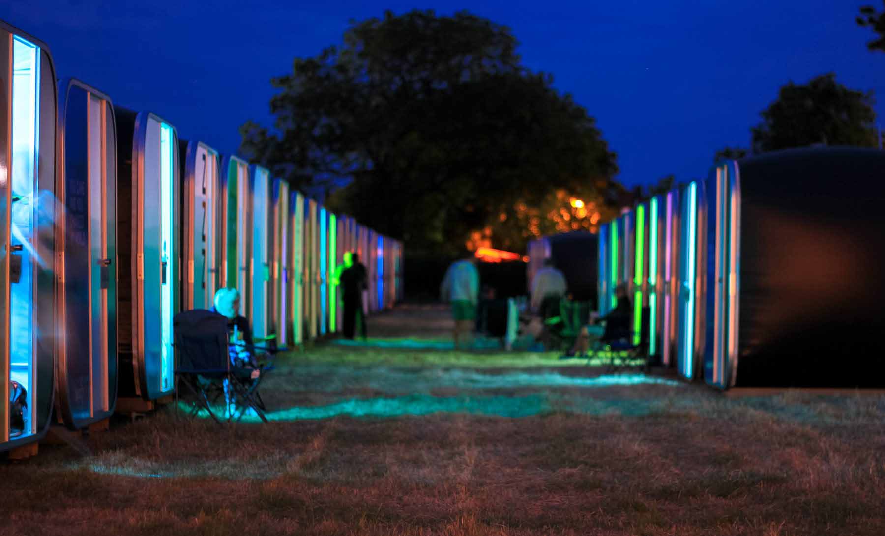 现代化酒店房间的所有物品,都可以一次性打包快速建成。消费者聚集在哪儿,房子就能盖在哪儿。时间也更短,最多不超过4周。Pop-up Hotel做过格拉斯顿伯里音乐节的快闪酒店。一开始,参加音乐节的人只能在沾满泥土的涤纶材料帐篷或者睡袋里休息,几年前,Pop-up开始在节日期间提供简易房屋,里面有全新的床单、蓬松的枕头、独立卫生间以及不间断的电力供应。如果付更多的钱,房间里还会有简易的实木家具、地毯、LED灯。最重要的是,这里还提供了能同时容纳两百人用餐的餐厅和酒吧。