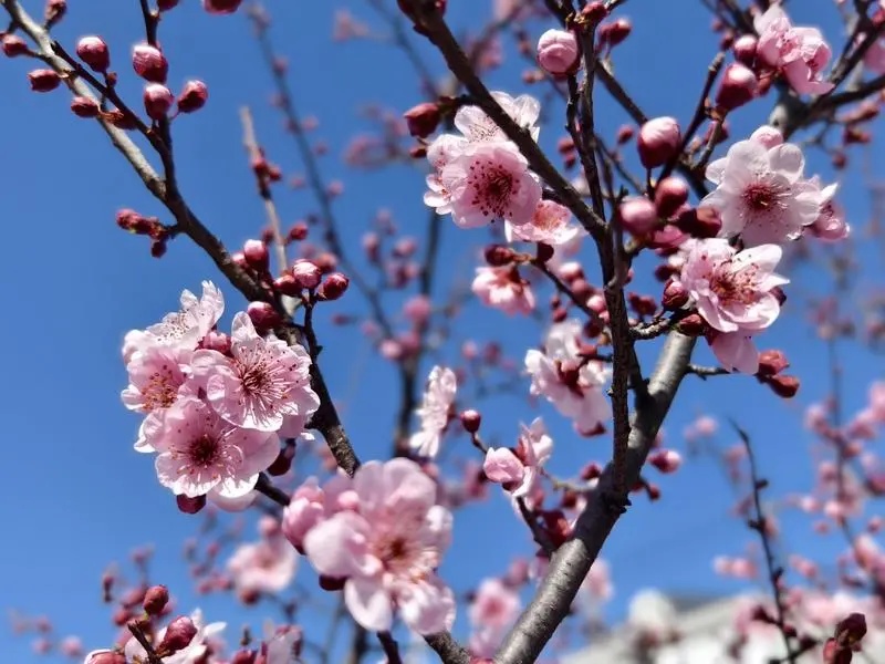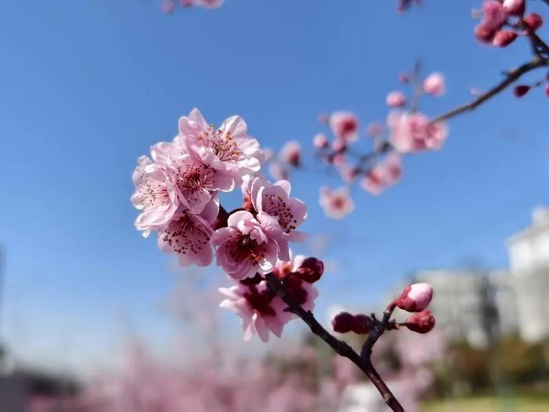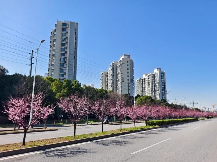 早春时节的宝山,铁山路可能是最美的市政道路之一。元宵节后天气渐暖,铁山路上的美人梅也迎来了盛花期,为来往行人打造“最美街景”。