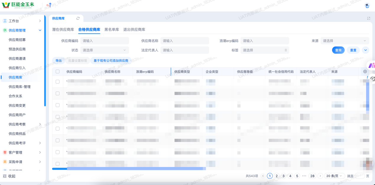 图 系统“供应商管理-供应商库”页面