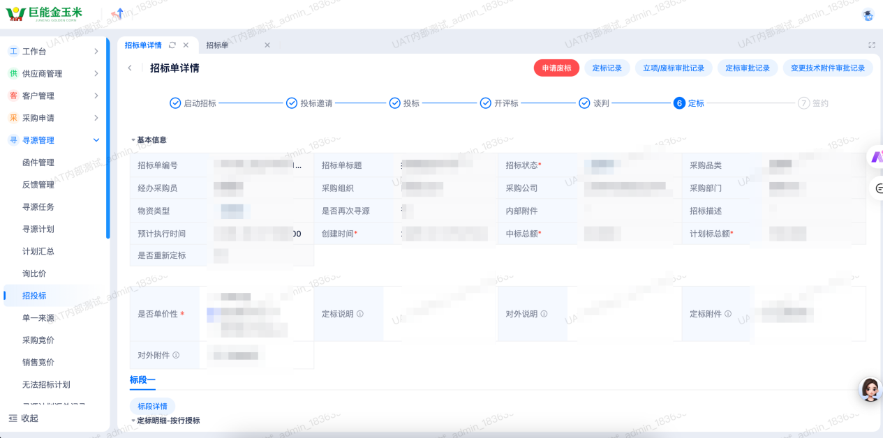 图 系统“寻源管理-招投标”页面
