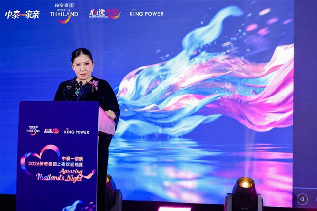 泰国国家旅游局局长塔帕妮·吉娅蒂沛汶也致辞解读了“中泰一家亲”的意义,她表示,基于相近的文化根基,泰中两国人民始终亲如一家,使得泰中友谊稳步发展,并在长期合作中实现互利共赢。她在晚宴上同时宣布,泰国国家旅游局2026年度推广主题为——神奇泰国·心选之旅,希望每位中国游客赴泰旅行都能获得心至如归的旅途体验。