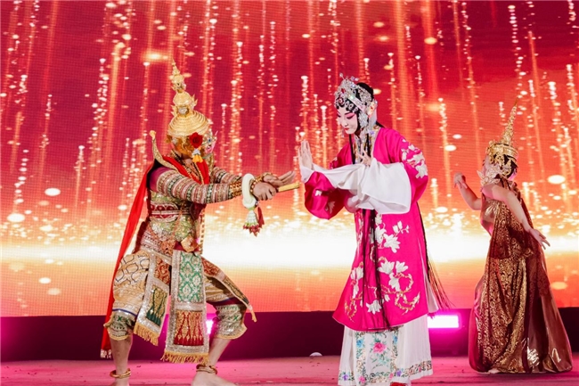 特别值得一提的是,本次活动还得到了上海京剧院表演艺术家的鼎力支持,为中泰双方呈现传统京剧《四郎探母》名段的同时,还联合泰国艺术家联袂携手,以“中泰一家亲”为主题,表演了一段京剧和孔剧共舞的特别共创表演,将晚会推向高潮。