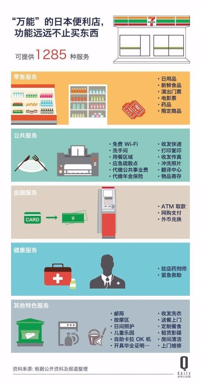 从这张图上看,日本的7-11可谓一个“万能”的便利店。