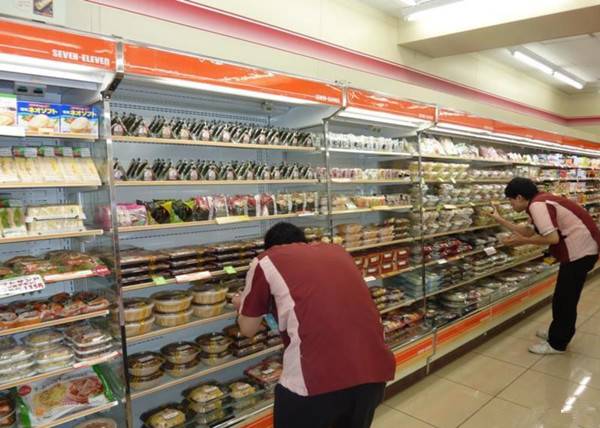 ▲正在整理货架的7-11店员