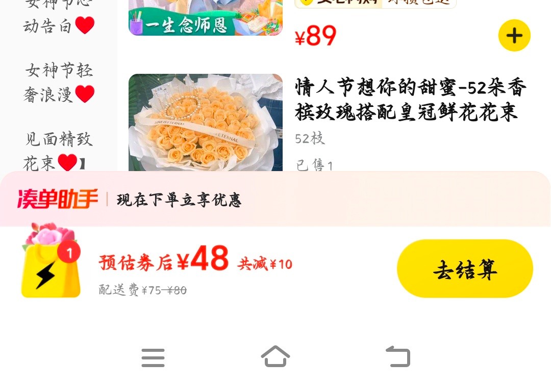 鲜花四十八,配送七十五?