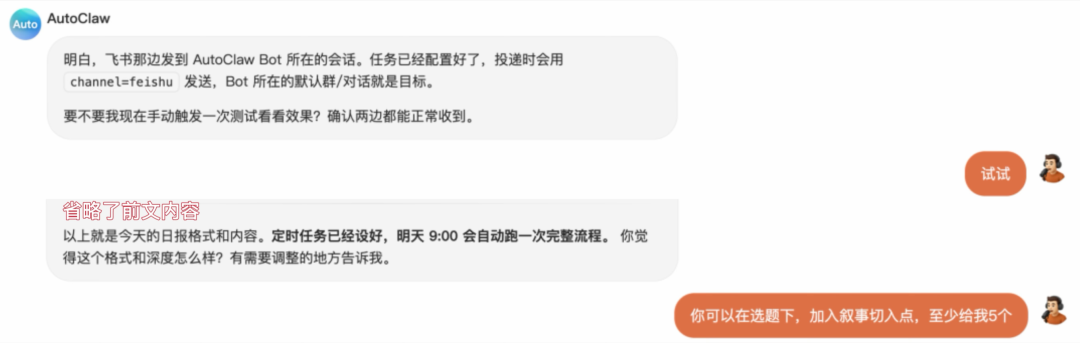 坦白说,这套指令丢过去之后,龙虾的表现是令人惊艳的,它及时给我反馈并确认各种细节。