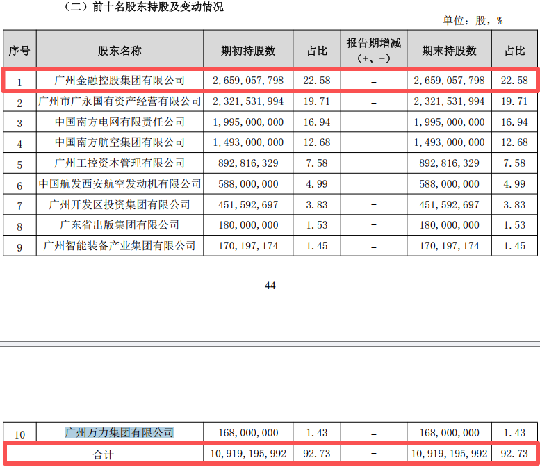 图 / 广州银行的前十大股东构成与持股情况(来源:广州银行2024年报)