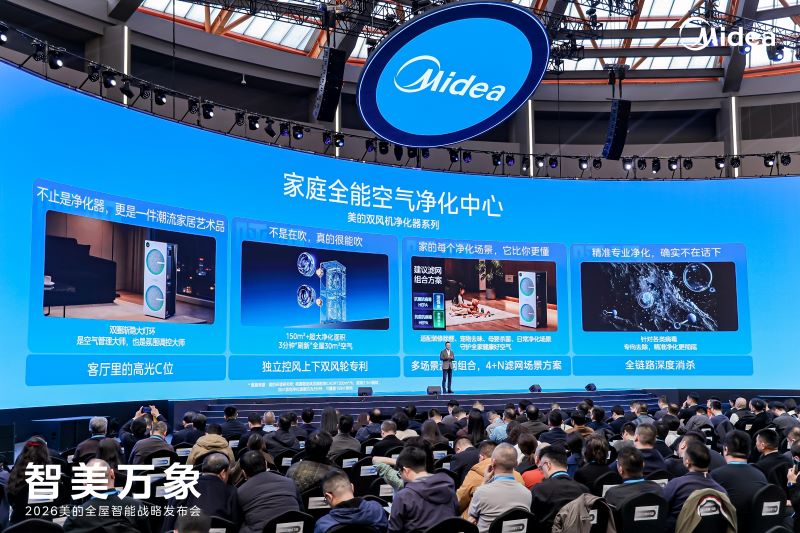 3月10日,以“智美万象”为主题的美的2026全屋智能战略发布会在上海举行。围绕现代家庭在空气管理、饮食烹饪等生活核心场景的多个痛点,美的小家电现场发布了美的双风机净化器U8等多款重磅新品,为追求健康品质生活的家庭提供专业守护。