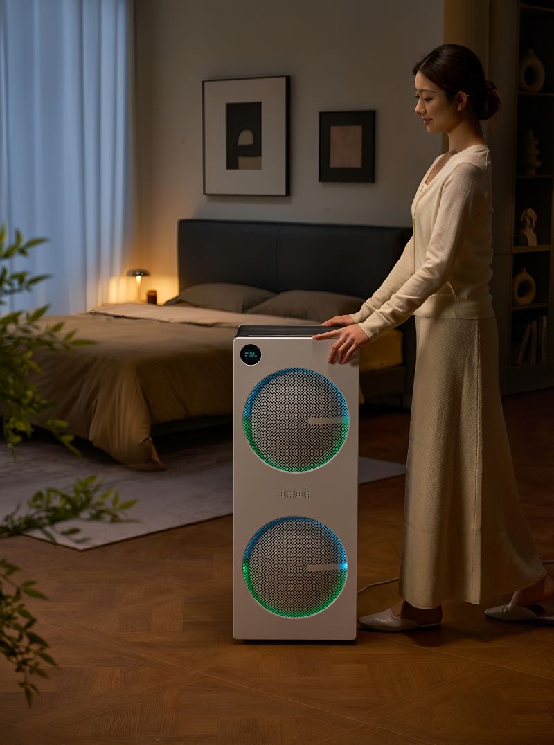 新房装修后长期存在大量甲醛,不少用户会通过空气净化器提升除醛效率。然而传统净化器风机就一个“单核”驱动,先天不足,风量孱弱、速度也慢,气流因此有气无力,遇上沙发、柜子等陈设后气流更显软弱。最终导致传统空气净化器净化效果……有,但不多!