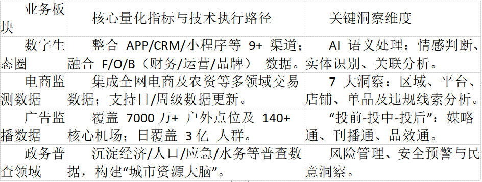 业务矩阵:主营业务涵盖专业数据分析、数字化营销 SaaS 产品以及行业数字化解决方案。