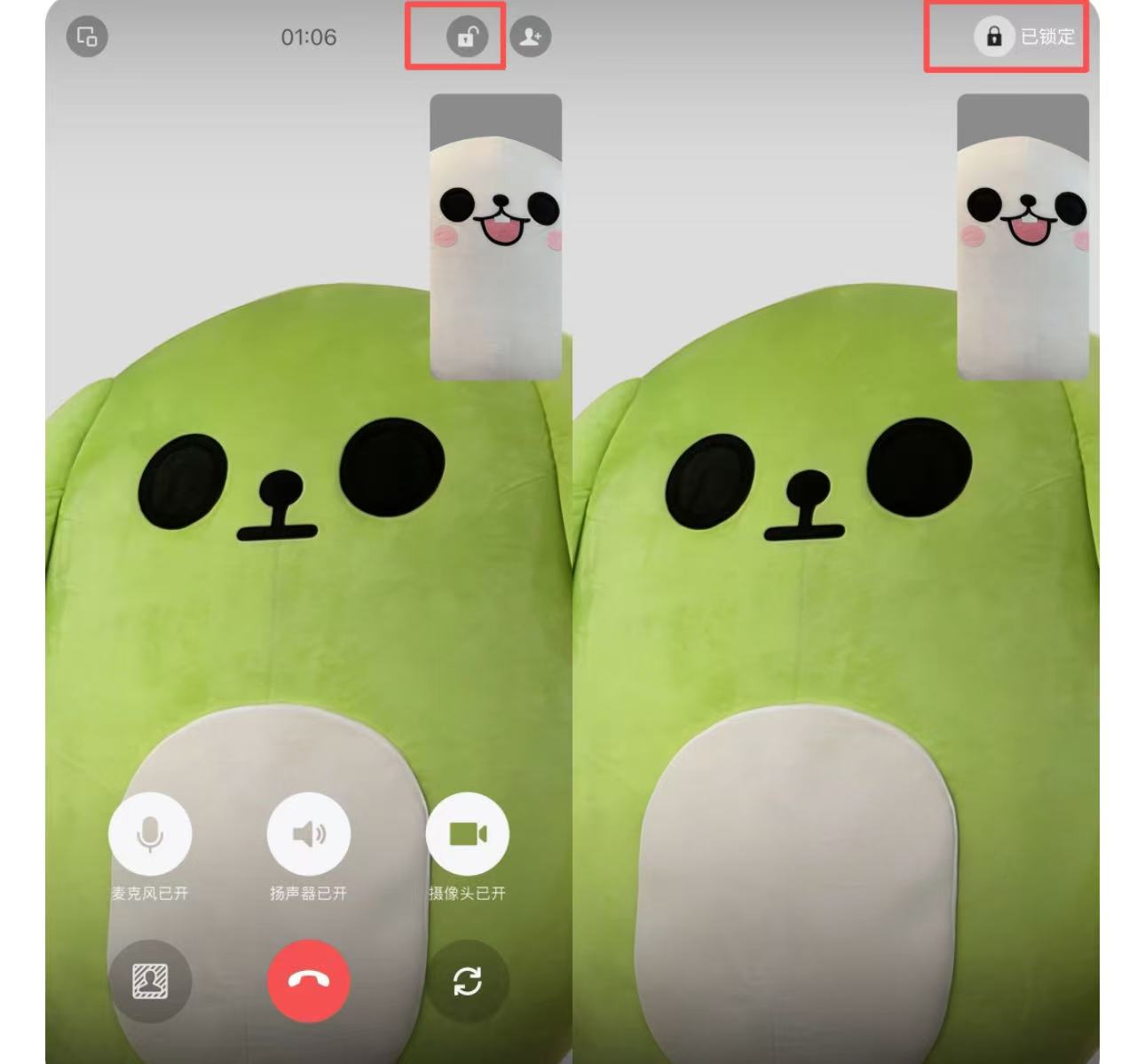 再者有时候用户视频聊着聊着就没了,可能是误触点了挂断。现在微信视频更新了锁定屏幕功能。微信视频时点击右上角锁定图标,即可锁定屏幕。