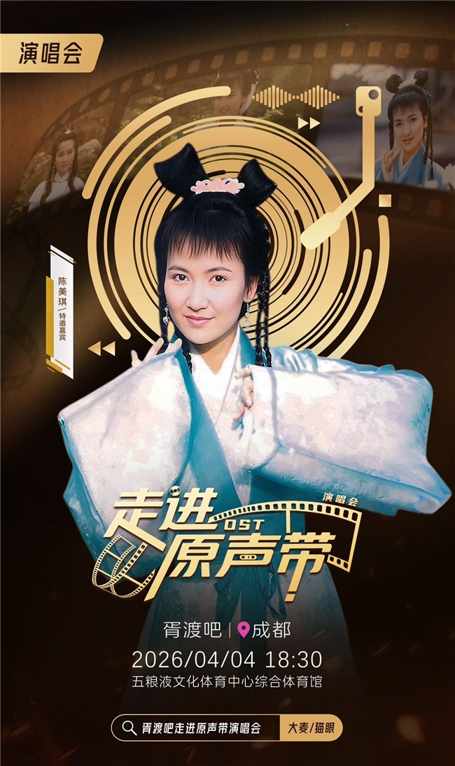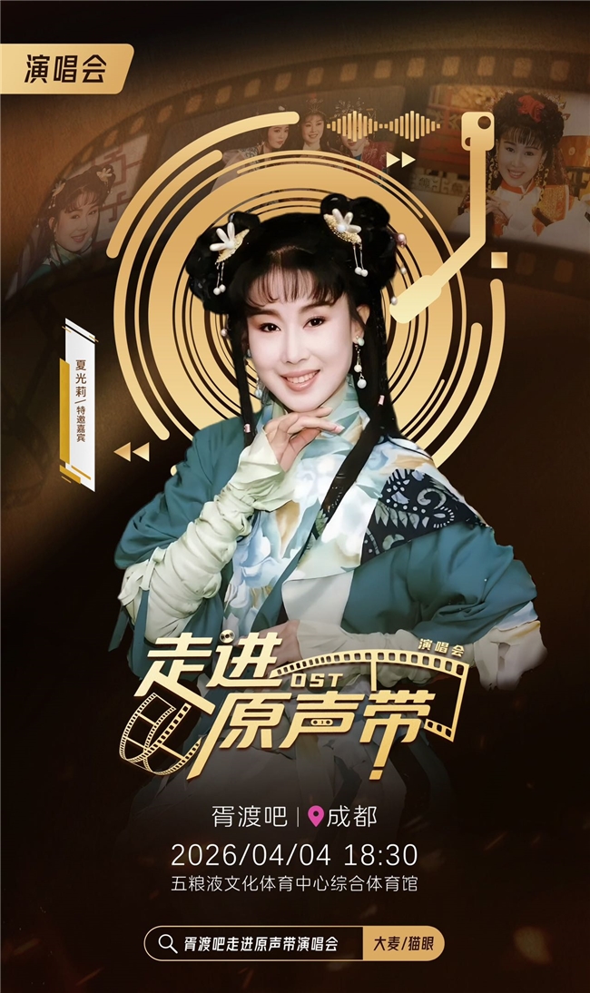 近日,备受华语影视怀旧剧迷瞩目的胥渡吧“走进原声带”演唱会正式官宣成都站重磅信息。这场堪称“神仙打架”的声影盛宴,将于2026年4月4日18:30登陆五粮液文化体育中心综合体育馆,以“荧幕传奇+OST原唱+原班制作”的史诗级配置,带领观众穿越回80、90年代的黄金影视岁月。预售发布会也将在3月14日在成都印象城举办,《新白娘子传奇》中“小青”的饰演者陈美琪和演唱会发起人胥渡将亲临现场,与粉丝近距离互动,同步开启门票预售通道。