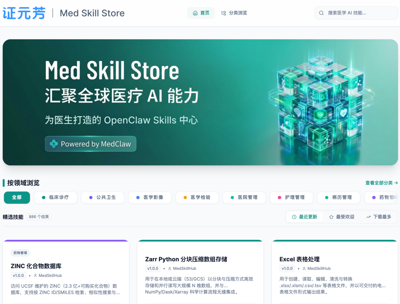 3月13日,轻松健康集团正式上线证元芳 MedClaw Skills Store,首批上线 886 个标准化 Skill,覆盖临床诊疗、公共卫生、医学影像、医学检验、医院管理、护理管理、病历管理、药物管理八大核心医疗场景。据公开信息,这是医疗行业首个Skill商店 ,也是轻松健康在医疗 AI 领域持续加码布局的又一关键落子。