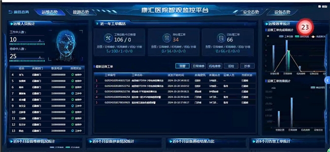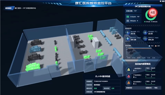 三、运维透视,实现“数字孪生巡检”:对于像康汇医院这样拥有数万台设备的庞大院区,传统巡检难以全覆盖。通过数字孪生平台,运维人员可在电脑前进行“3D漫游”,虚拟巡视位于地下二层的冷冻站或屋顶的新风机房。点击设备即可查看实时参数,系统还能基于历史数据预测性维护,在设备故障前发出预警。