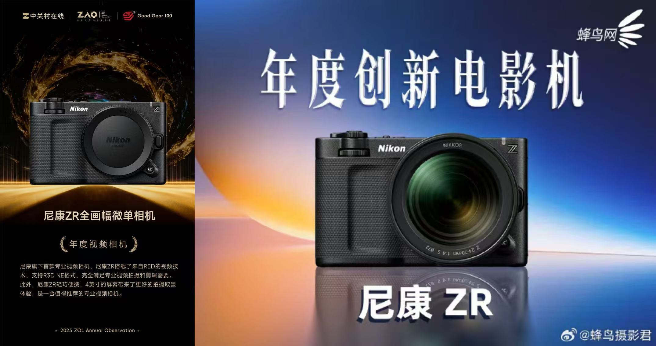 在视频与专业创作领域,尼康ZR获得蜂鸟网“年度创新电影机”、热点科技“年度编辑推荐奖”、科技视讯“年度最佳电影机奖”、佳友在线“年度最佳全画幅视频机”等认可。作为尼康面向高规格视频创作打造的专业机型,ZR集成先进影像处理能力与完善的视频功能配置,兼顾画质表现与系统稳定性,在多个媒体年度榜单中的持续入选。