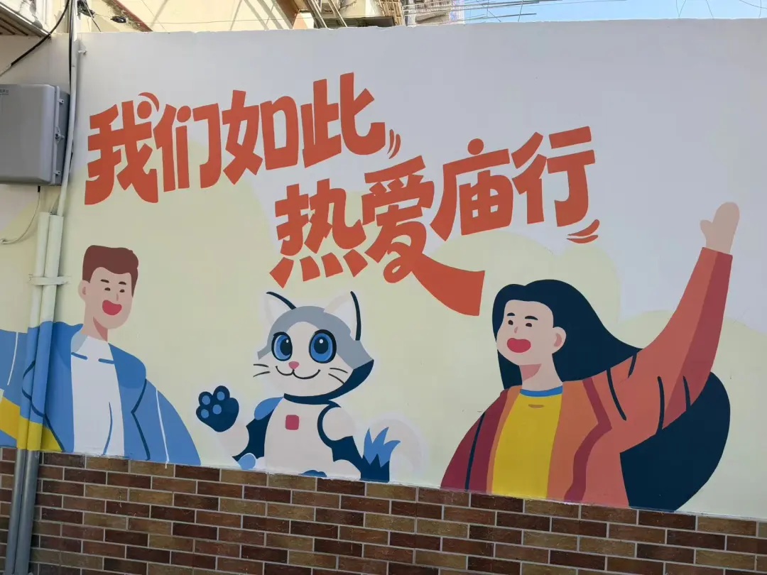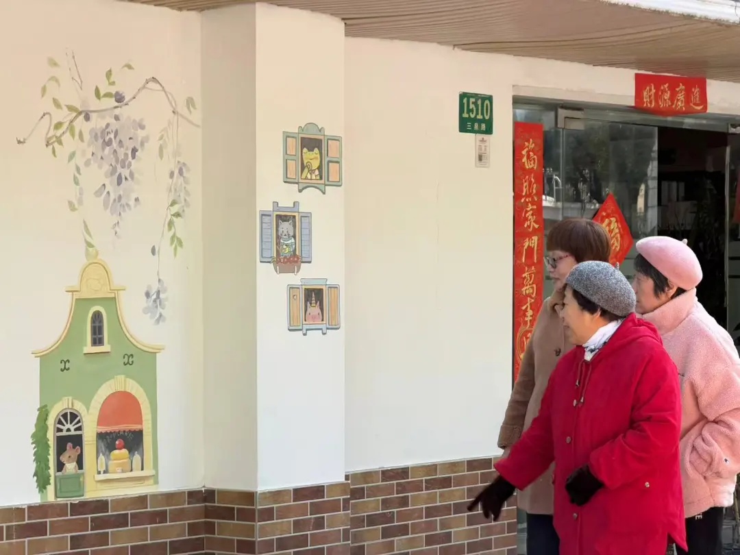 躲猫猫的小兔子、跳跃的马里奥,烟火气的街区……最近,宝山庙行段的三泉路老街悄悄换上了“新皮肤”。原本斑驳陈旧的墙面,如今摇身一变,成了妙趣横生的艺术画布,成为居民家门口的打卡点。