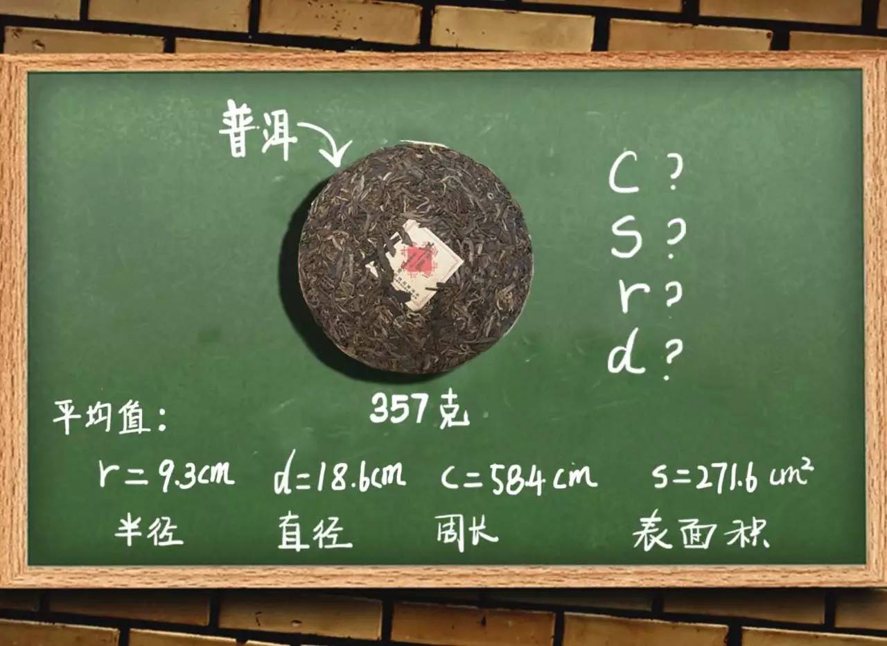 1. 普洱茶常规357克饼,一饼茶的半径?直径?周长?表面积是多少?