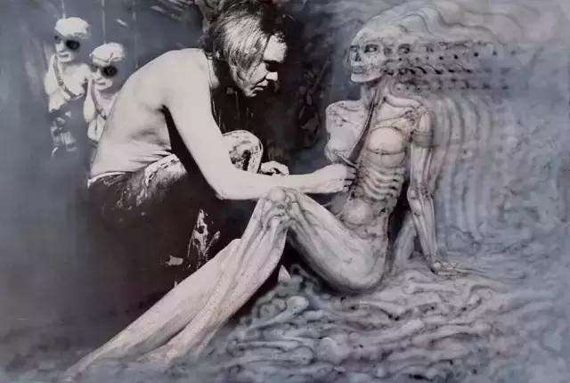 然而真正使得H.R.吉格往“大师”方向更迈进一步的,则是当H.R.吉格开始研究上了弗洛伊德的精神分析理论之后。